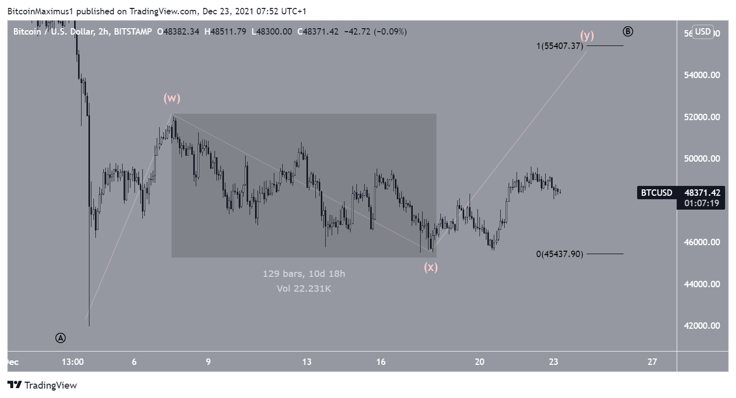 If correct, it’s now in the Y wave, which has an upwards direction. If it has a 1:1 ratio relative to wave W, it would lead BTC to a high of $55,400. This would complete a longer-term wave B.