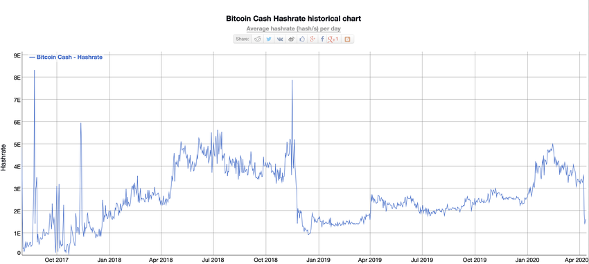 Bitcoin Cash has seen its hashrate plummet after its halving event as miners leave the network in droves.