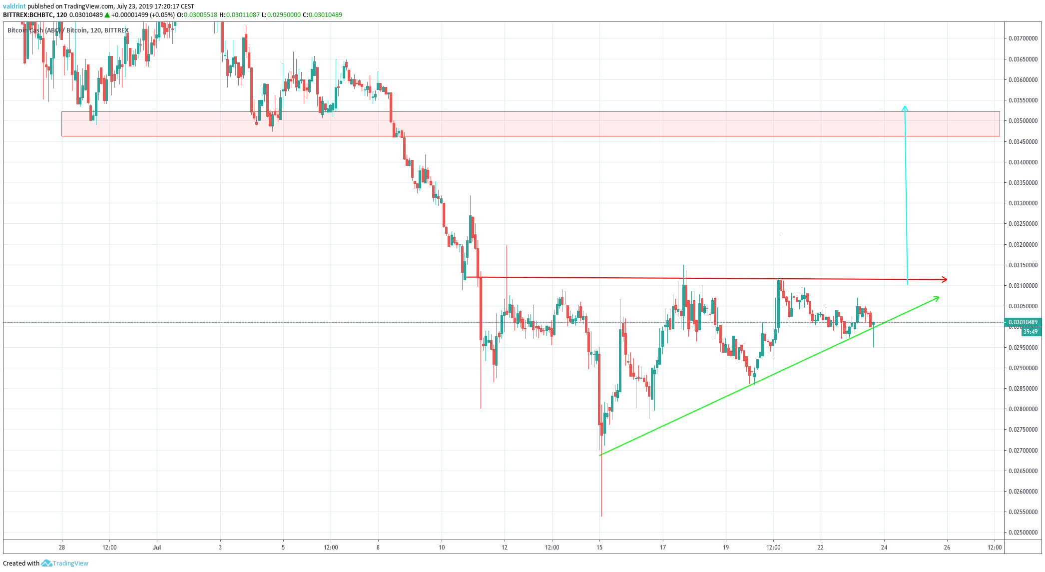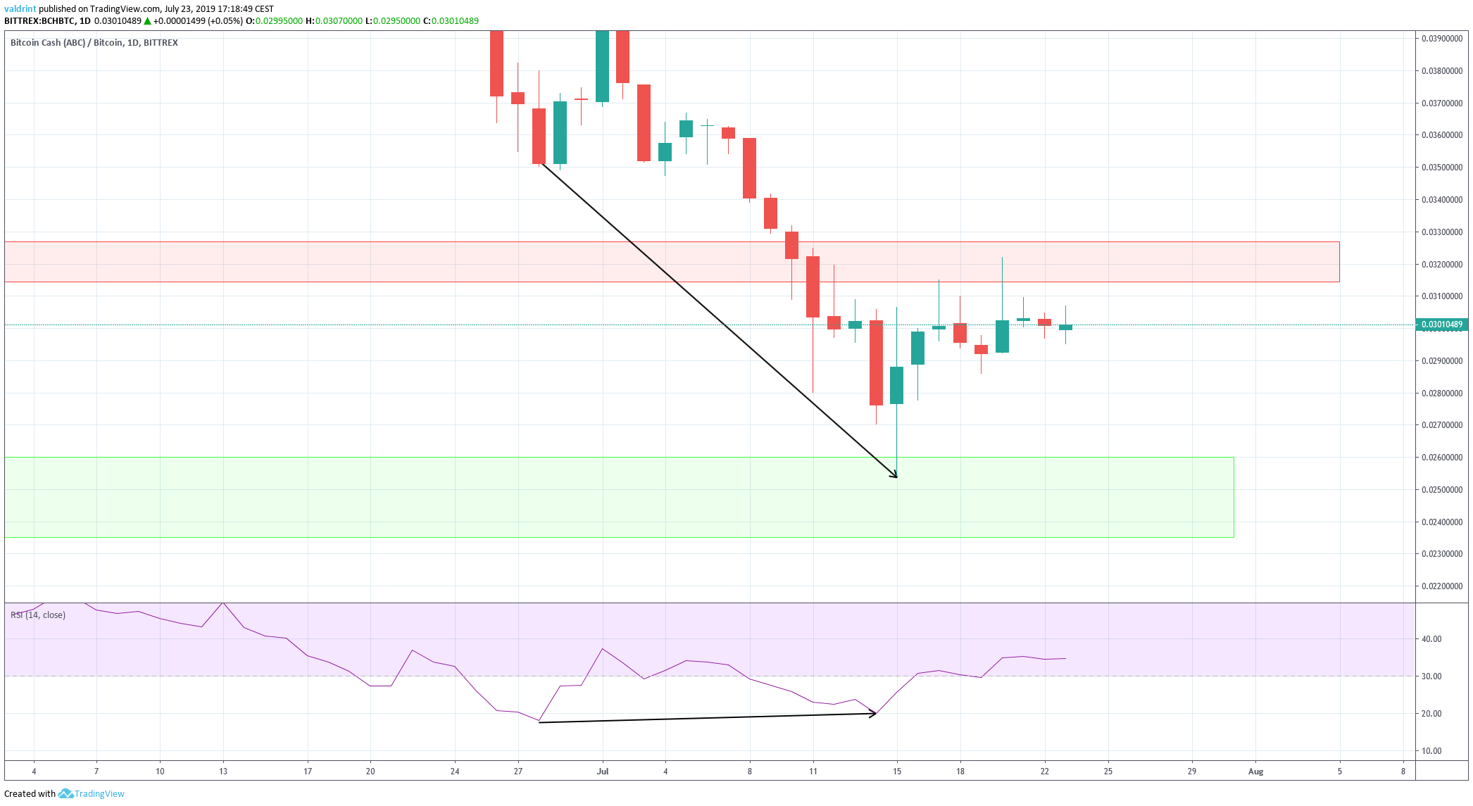 On the other hand, there is a significant support area near ₿0.032. The BCH price found support above it in the period from January-May 2018 before the price broke down from it in July.