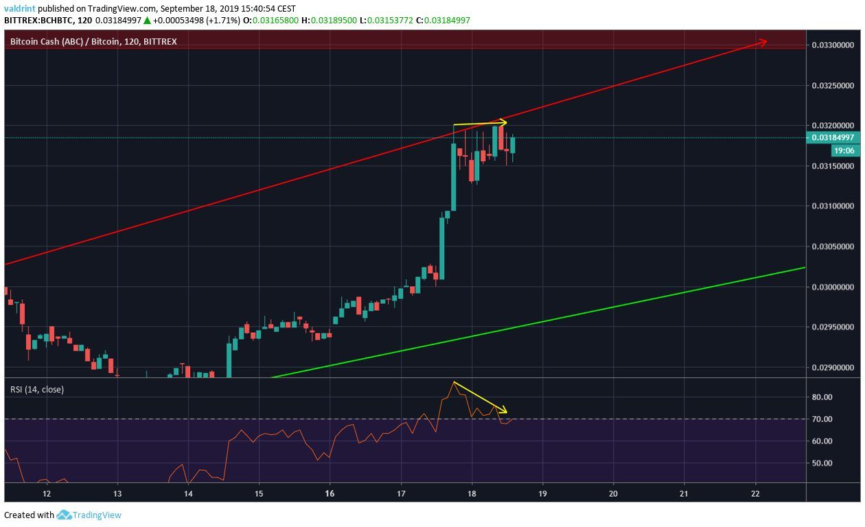 - BCH/BTC broke out from a symmetrical triangle.