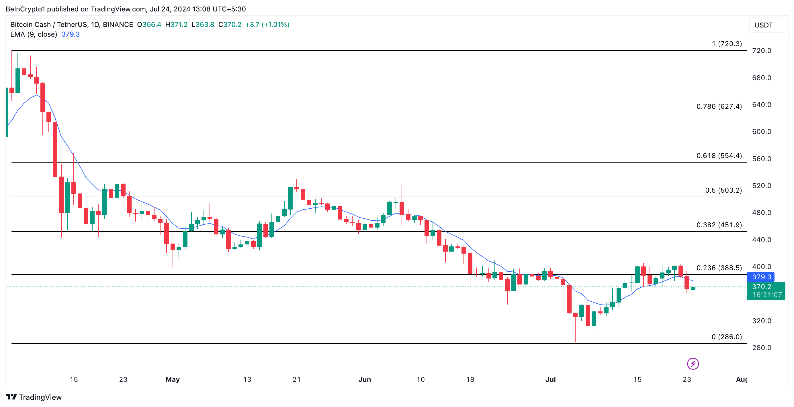The value of BCH, the native coin of the peer-to-peer electronic cash system, Bitcoin Cash, has declined steadily in the past few weeks. Exchanging hands at $370.21 as of this writing, the altcoin’s value has plummeted by 5% in the last seven days.