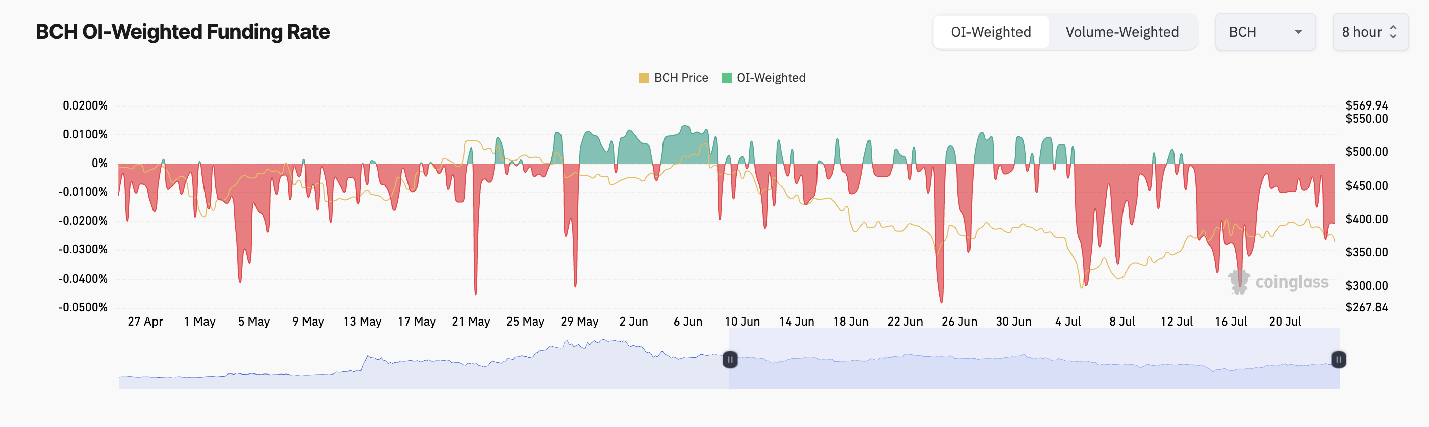 According to Coinglass’ data, BCH’s funding rate has been significantly negative since the beginning of July. As of this writing, it is -0.02%.