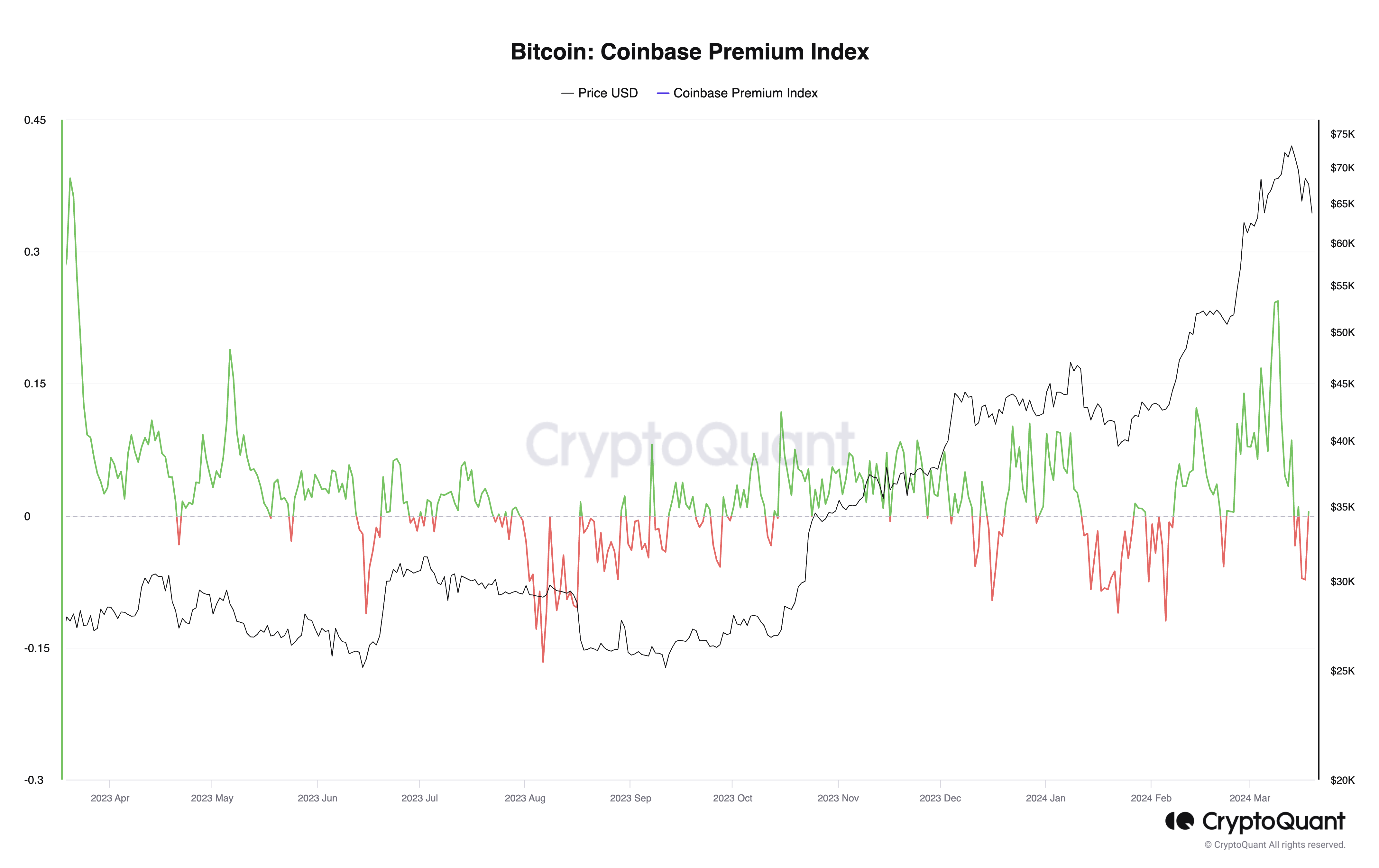 CryptoQuant’s data suggests a drop in Bitcoin prices on Coinbase, historically a gauge of US investor interest. Notably, Coinbase acts as custodian for the majority of the new US spot ETFs.