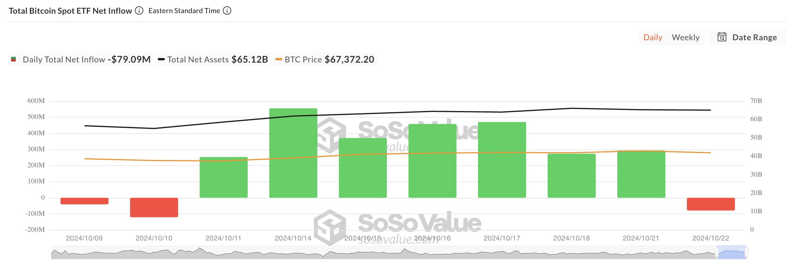 Data from SosoValue shows that BTC spot ETFs experienced a net outflow of $79.09 million on Tuesday, breaking a streak of seven consecutive days of inflows that totaled over $2 billion.