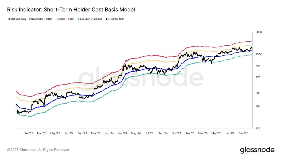 “Bitcoin continues to trade well above the Short-Term Holder Cost Basis. The rally remains below the Heated zone (+1 STD), suggesting momentum is high but approaching short-term risk conditions,” said Glassnode in a post.