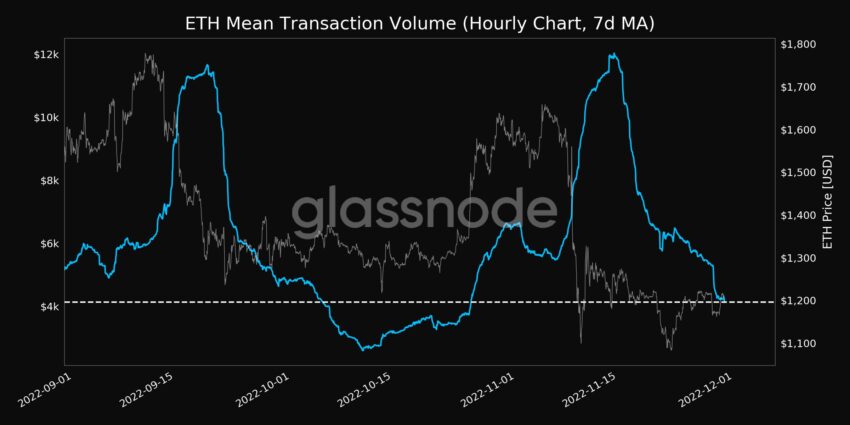 However, ETH median transaction volume (7d-MA) reached a one-month low which meant network vibrancy was relatively low.