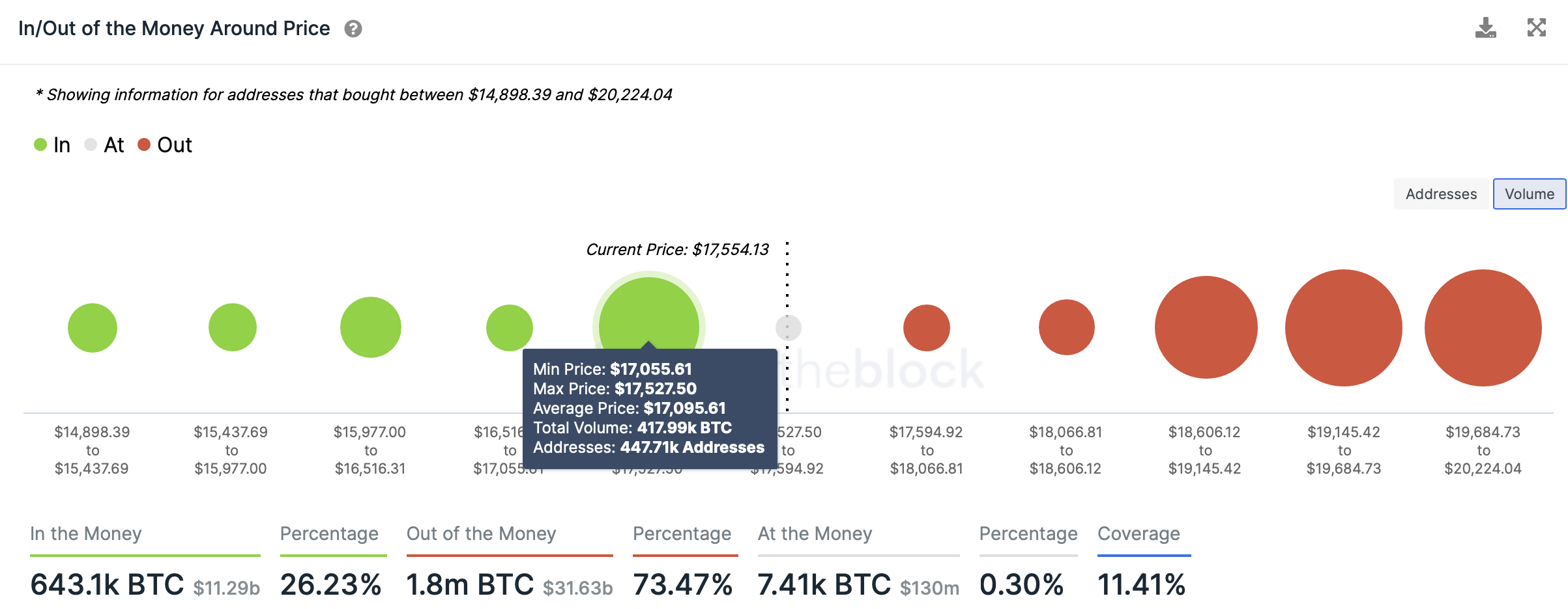 Going forward, with short-term price momentum improving, IntoTheBlock’s In/Out Of Money Around Price Indicator suggested a strong support for Bitcoin price at the $17,095 mark where 447,000 addresses hold 417,000 BTC.