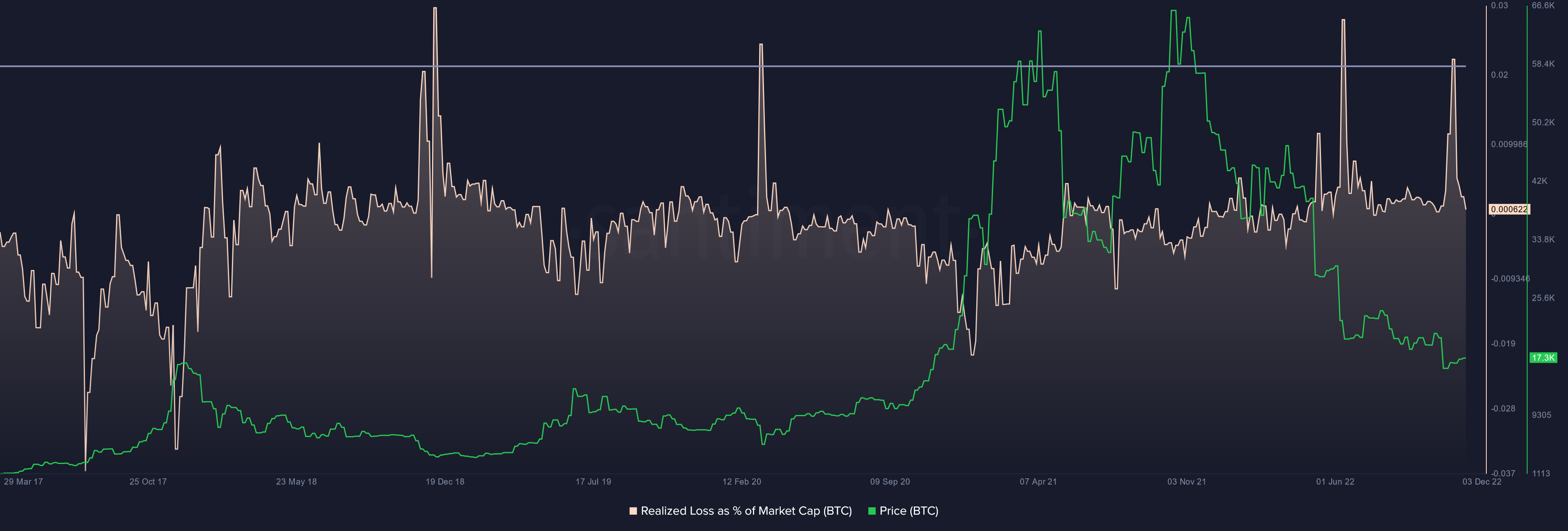 However, the indicator peaked recently, which indicated good buying opportunities in the market. Despite the indicator peaking twice this year, price action has continued to slump. It would be interesting to watch whether the realized loss as a percentage of market cap presents more historic buy opportunities.