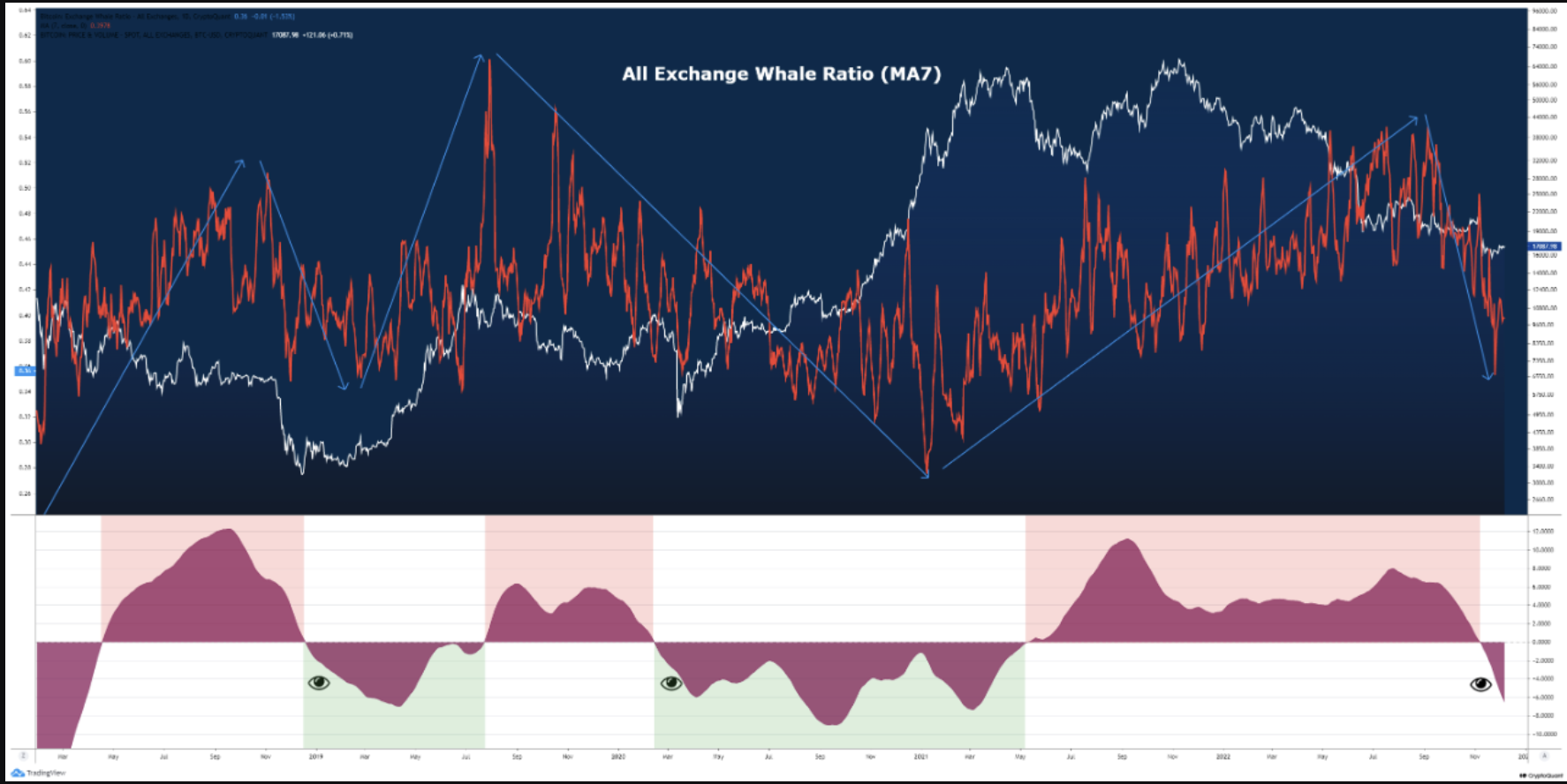 In addition to that, the Whale Exchange Ratio data sharply dropped in the last quarter of this year. A look at the data from 2018 to now corresponds to long-term upside or downside.