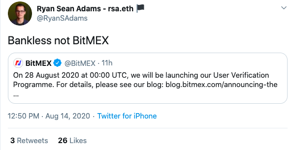 Although others may take the more charitable view that this is a way for BitMEX to increase its security and appeal to new customers, it’s likely to be a tough sell. This is especially true in light of previous incidents, like in 2019, when it accidentally leaked user emails.