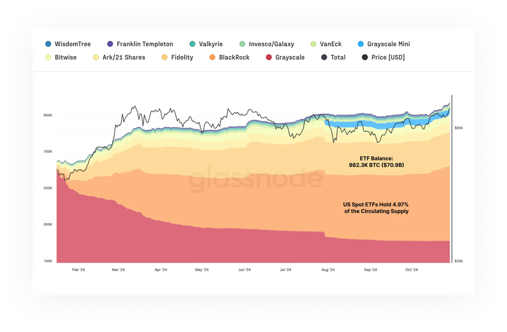 SponsoredInstitutional demand for Bitcoin exposure has surged, with total assets managed across all BTC ETFs now reaching a market value of $70.9 billion. These ETFs collectively hold approximately 4.97% of Bitcoin’s circulating supply, reflecting substantial interest from institutional investors.