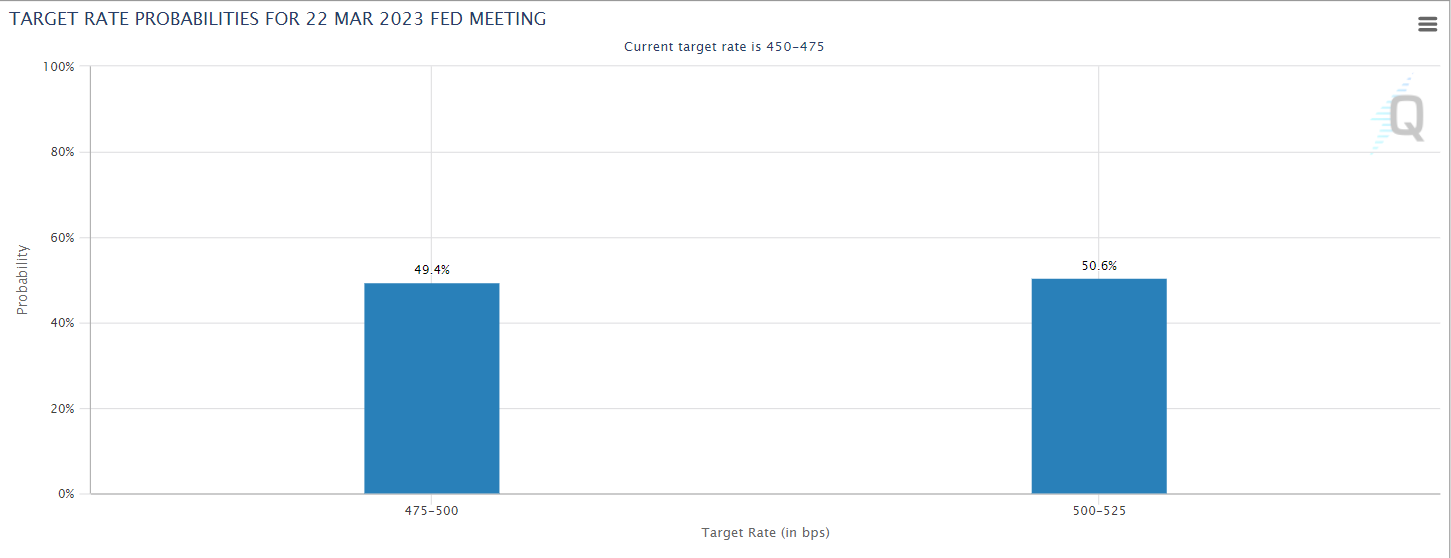 After the news, the Federal Reserve swapped downgraded odds of a 50 basis point rate hike to below 50%.