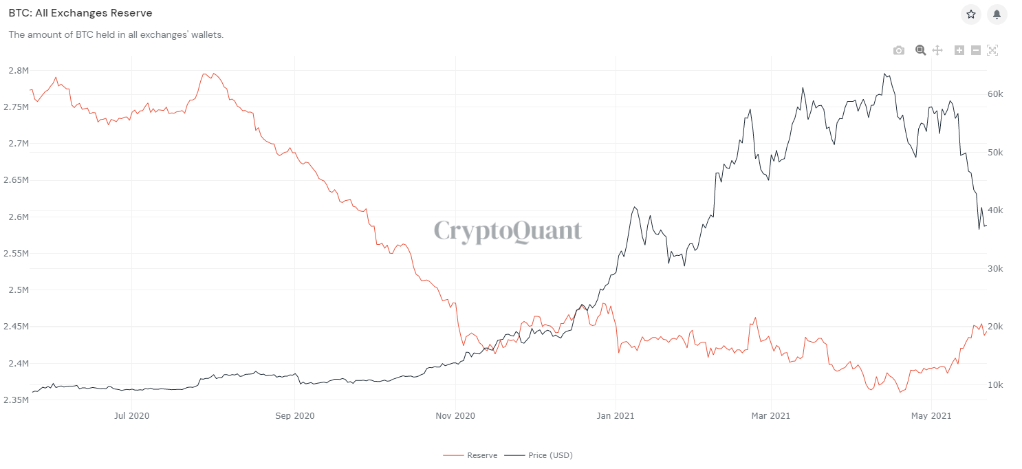 Exchange BTC reserves increasingÂ
