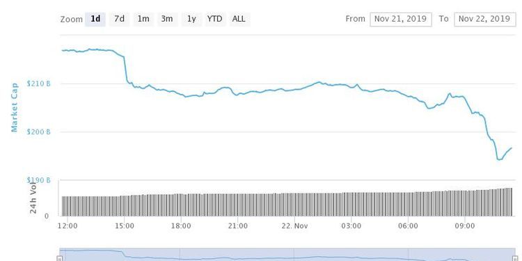 Over the last 24 hours, Bitcoin has shed around $14 billion from its total market capitalization. This has brought the price down to around $7,180 at the time of writing.