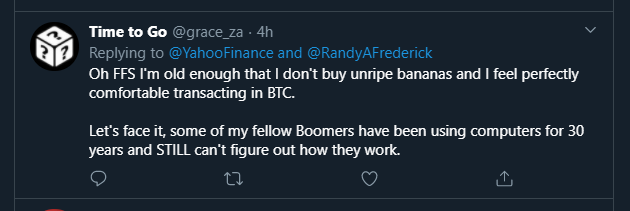 “…people in my demographic are uncomfortable with the idea of transacting in a currency that isn’t really controlled by a bank or a central government because if something goes wrong, what do you do?”