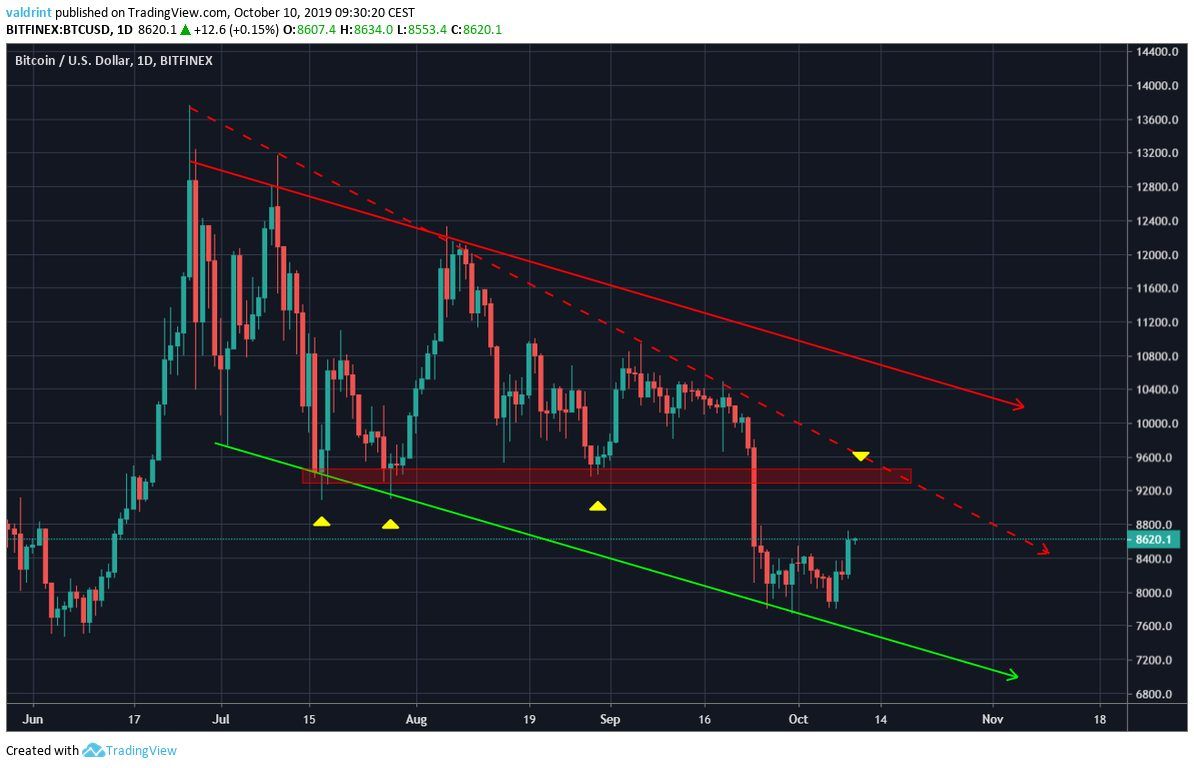 While we cannot decide on the current pattern, we can be sure that as long as Bitcoin stays below $10,500 (resistance line of the channel), we cannot consider its movement bullish.