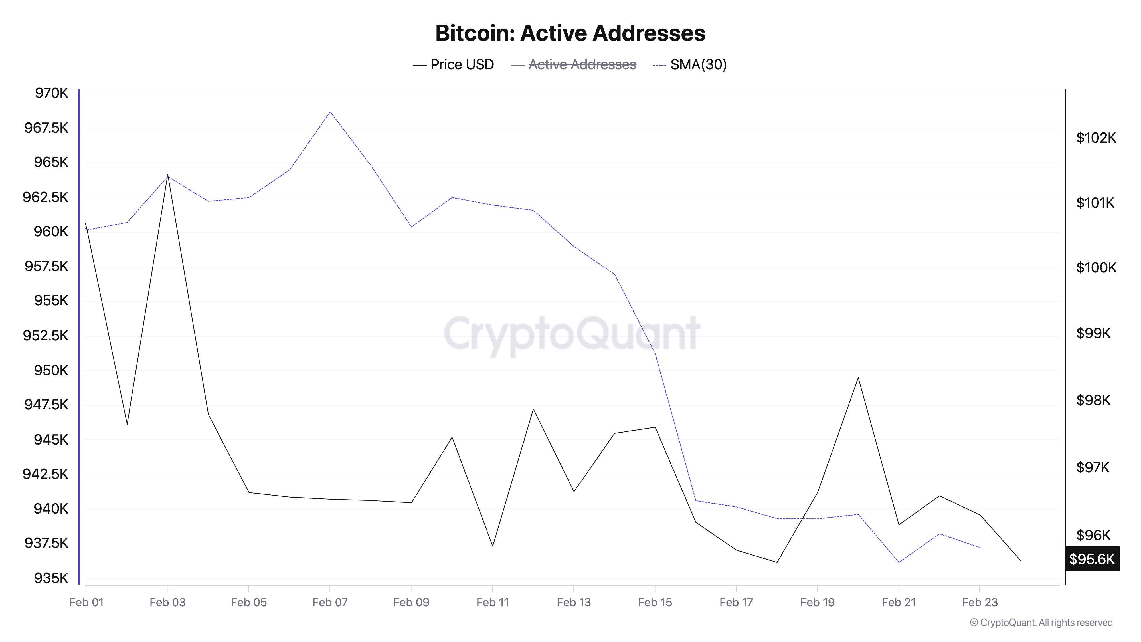 SponsoredOne such data Avocado considers is the number of daily active wallet addresses on the Bitcoin network. According to CryptoQuant’s data, when observed using a 30-day small moving average (SMA), the daily count of addresses that have completed at least one BTC transaction has plummeted by 2% since February 1.