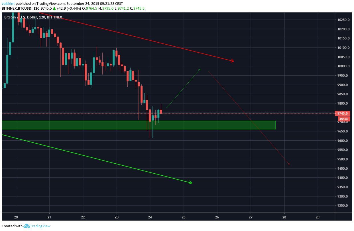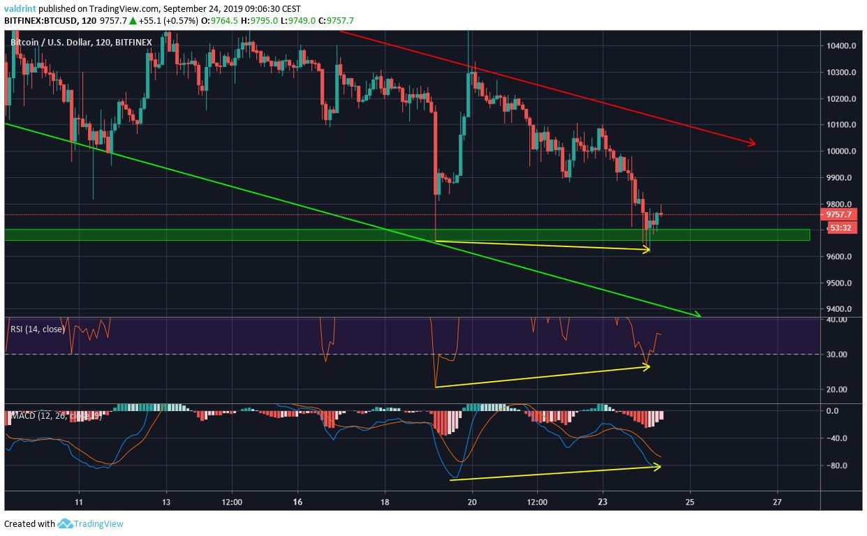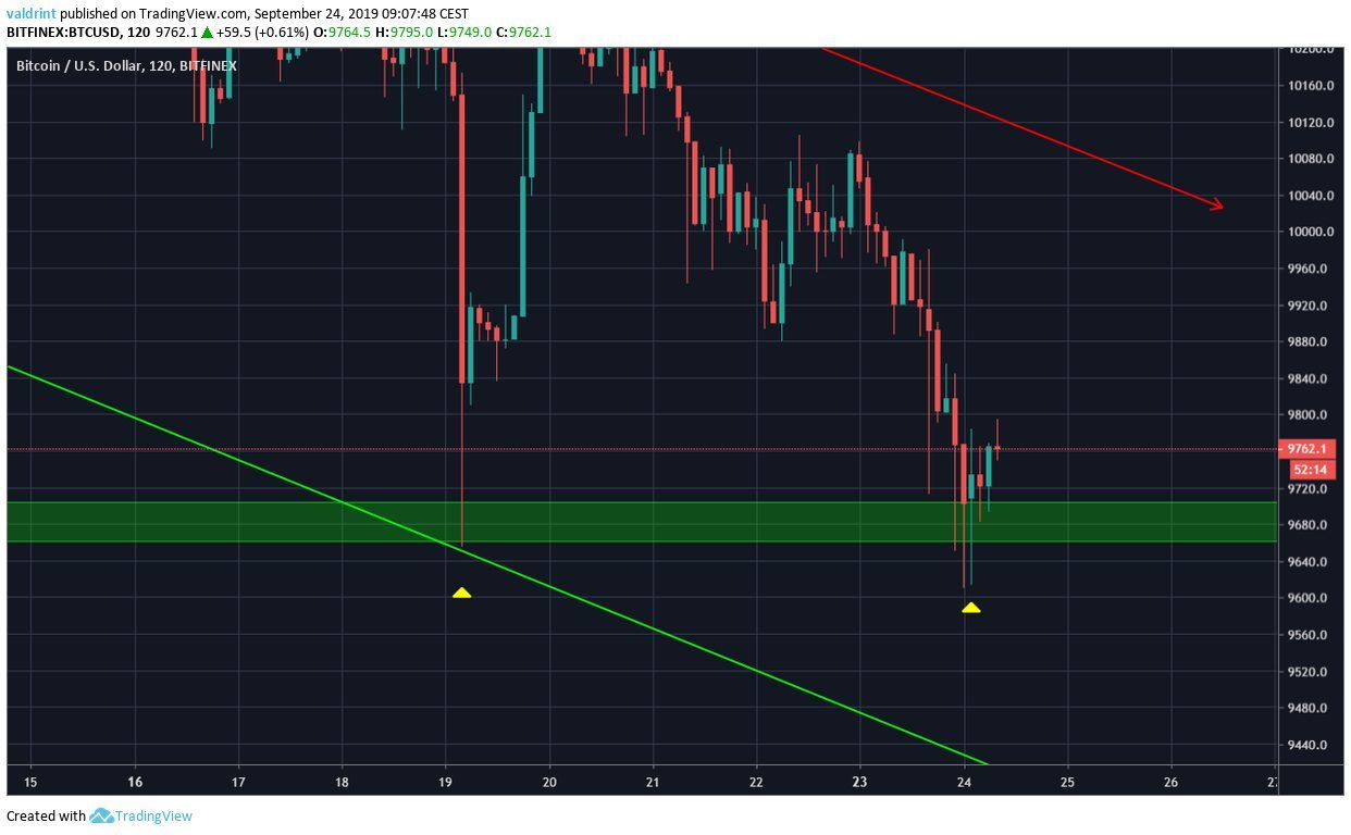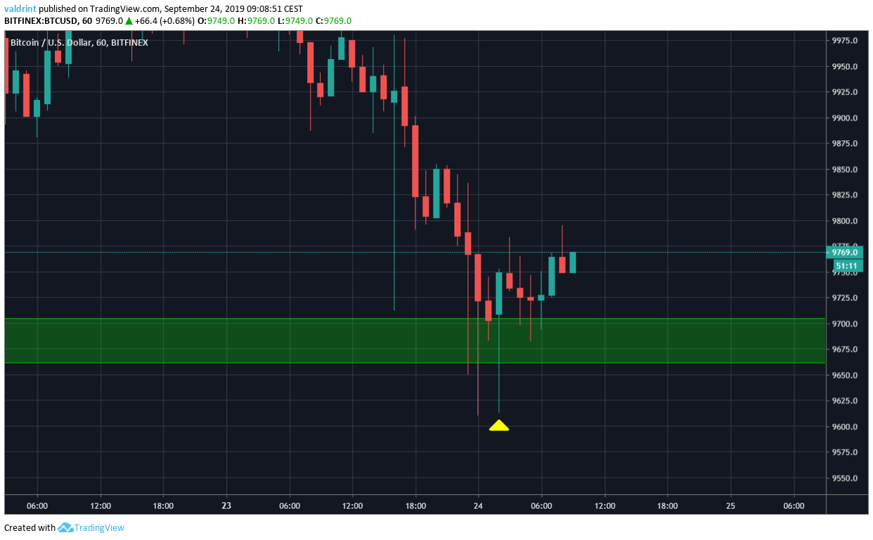Additionally, we can see that the price is currently at a significant support level — found at $9700.