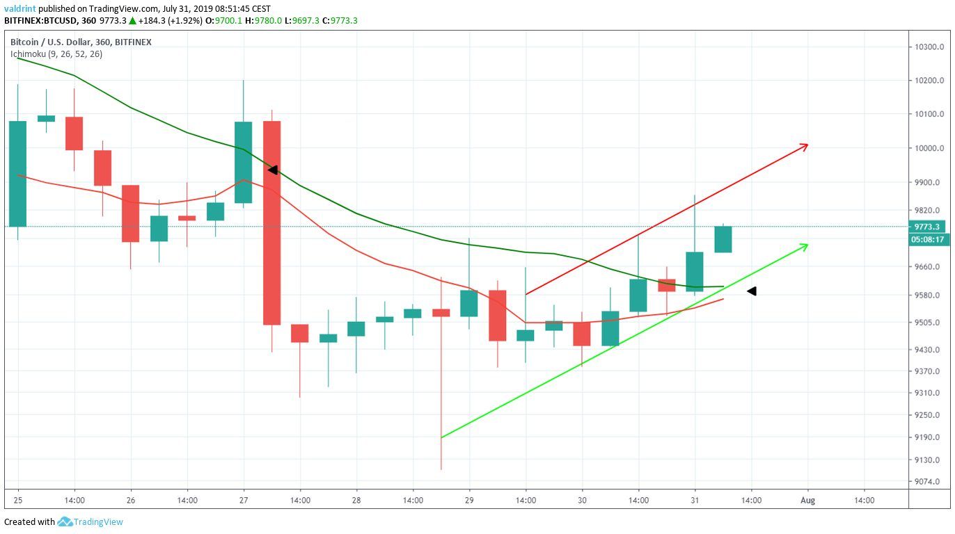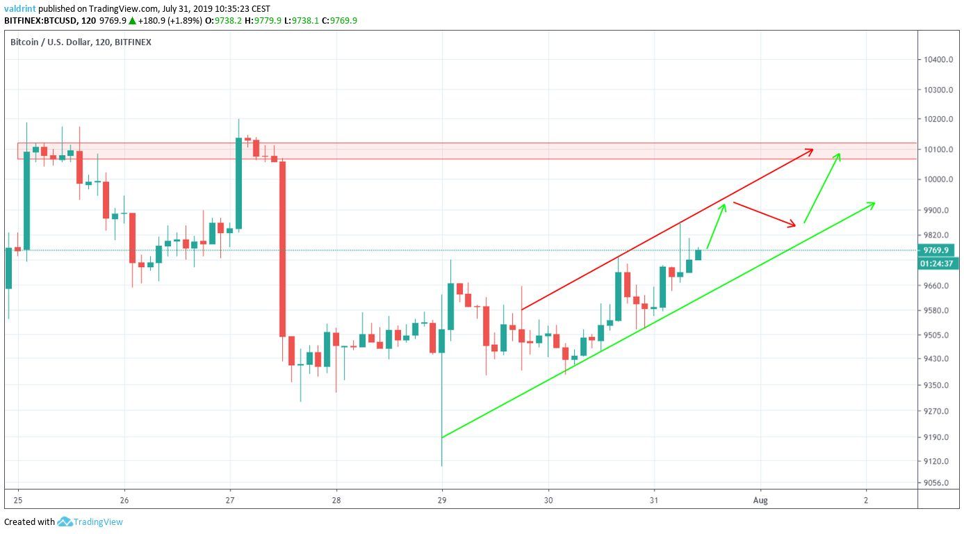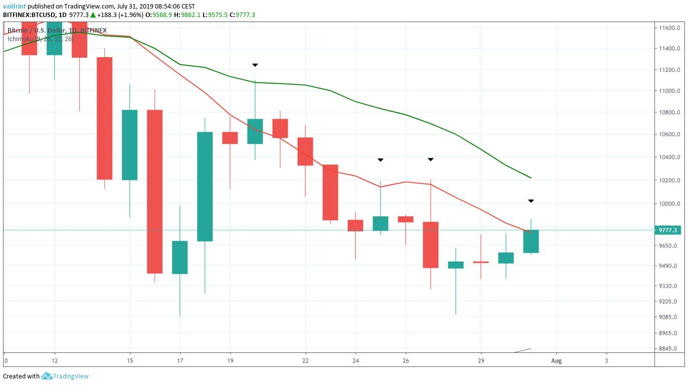 On July 27, 2019, the Bitcoin (BTC) price reached a high of $10,111. A rapid decrease ensued. On July 29, the price had dropped to a low of $9101. Since then, it has been increasing.