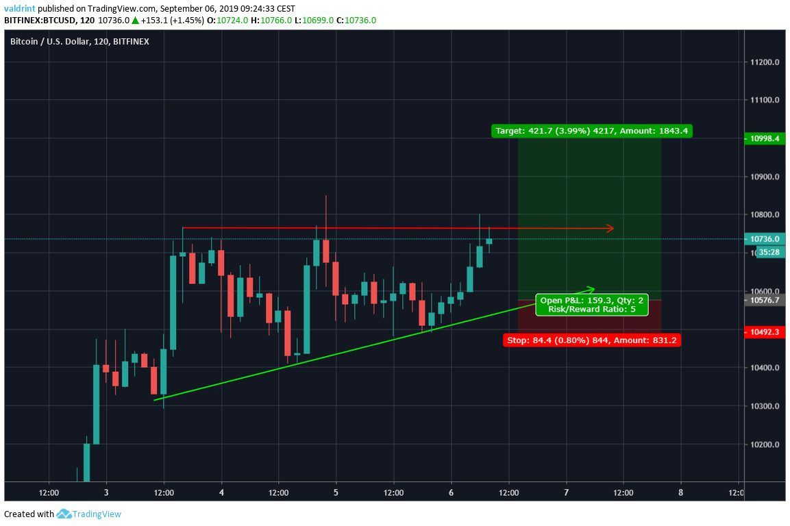 Our entry point would be at $10,550 and stop-loss slightly below $10,500.