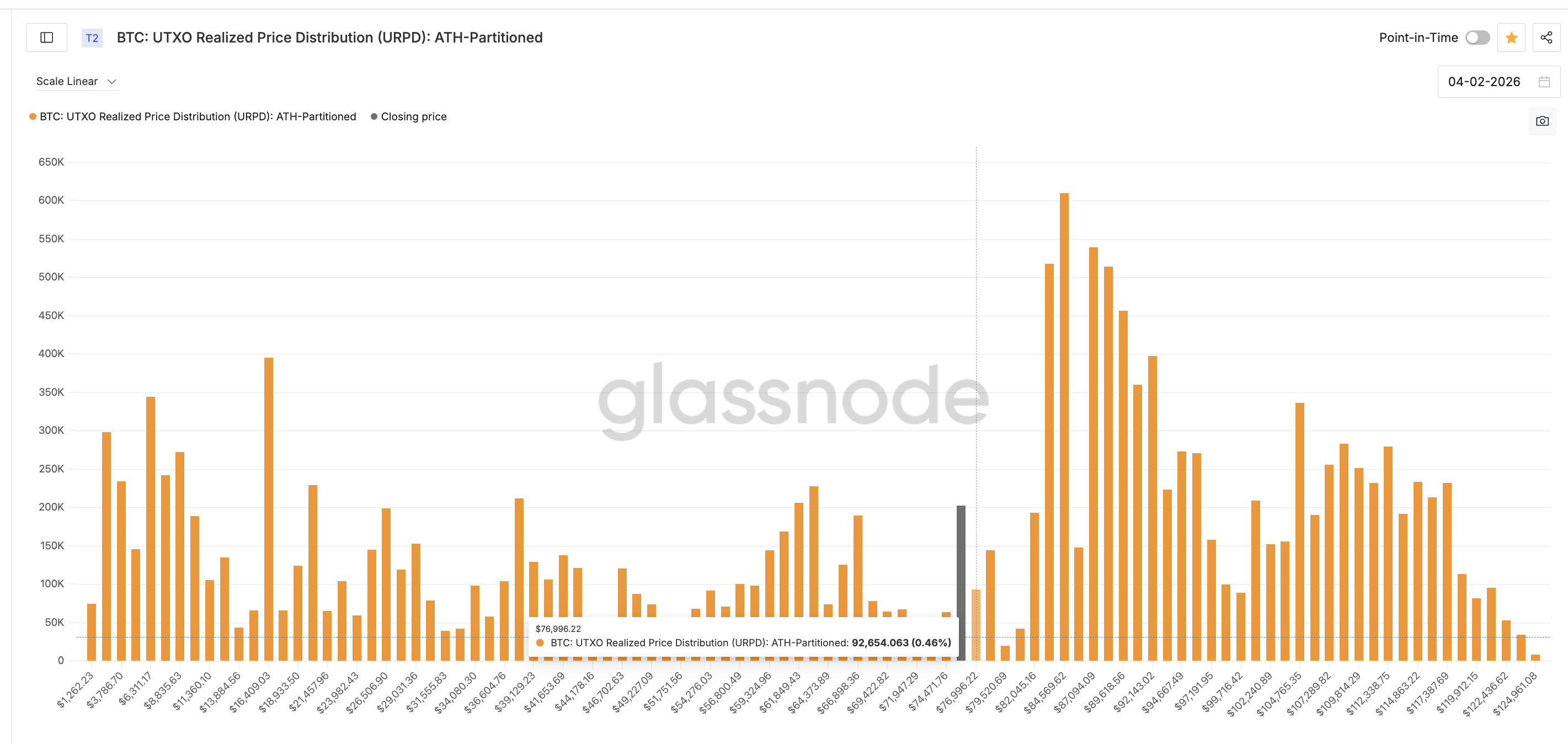 - $76,980: Immediate resistance from the current supply cluster