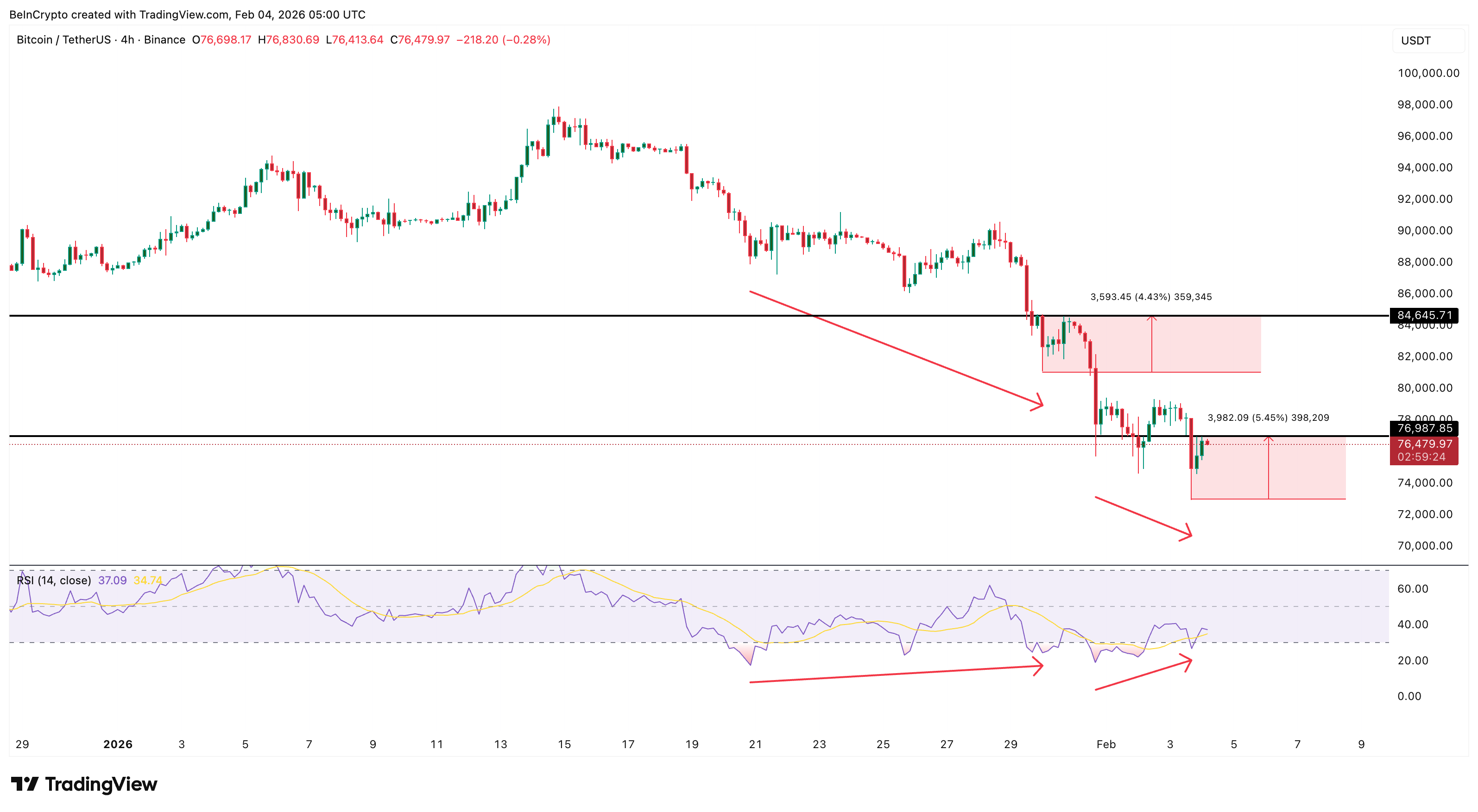 On the 4-hour timeframe, Bitcoin formed a bullish divergence between January 31 and February 3.