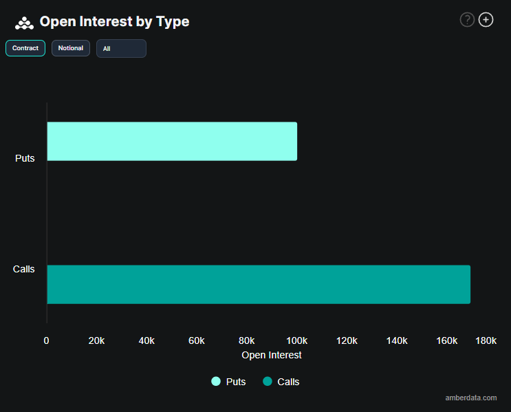 Open interest data further backs this optimistic shift, as call options now dominate the market, with over 169,760 call contracts placed.