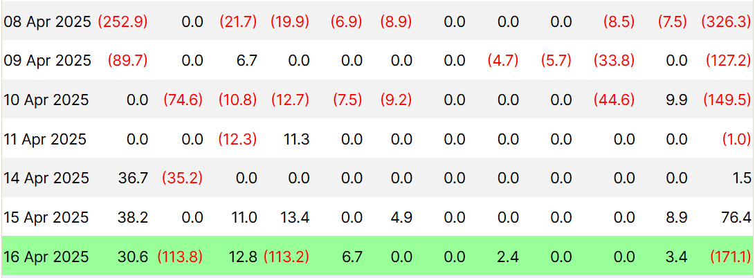 Spot Bitcoin ETFs have been experiencing heavy outflows recently, with $171.1 million in outflows recorded on Wednesday, April 16 alone, marking the highest for this week. This shift signals waning investor confidence in Bitcoin as market conditions remain bearish. As more investors pull their funds, it highlights a diminishing trust in Bitcoin’s short-term prospects.