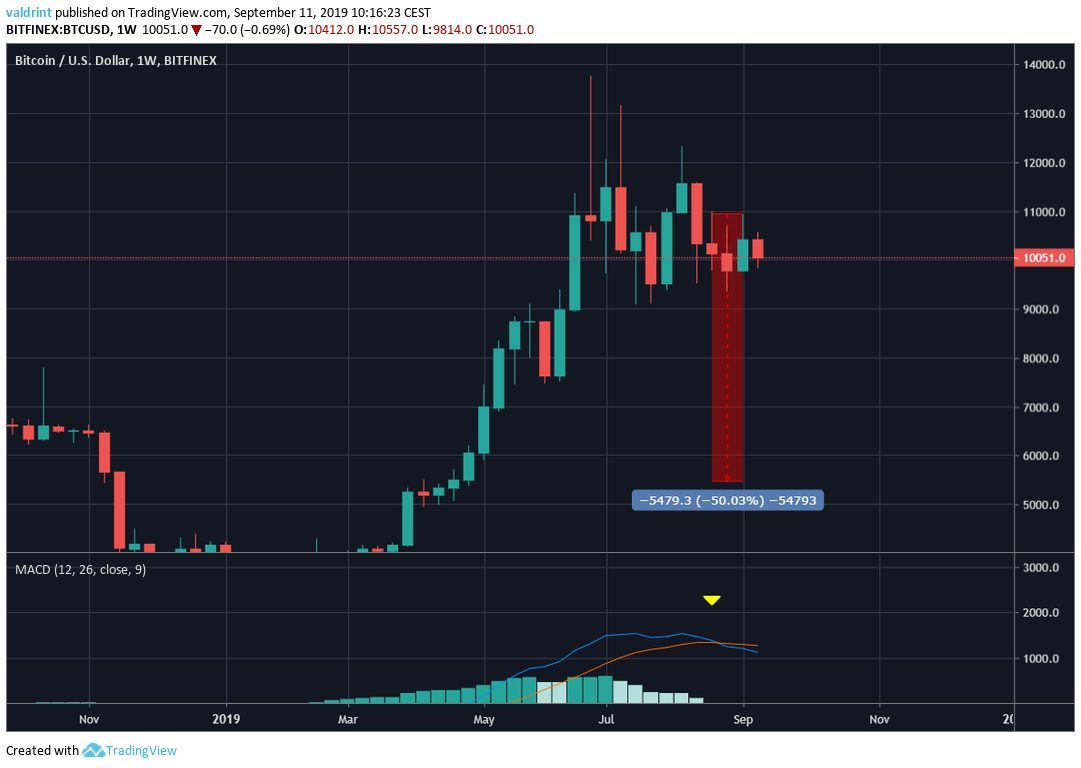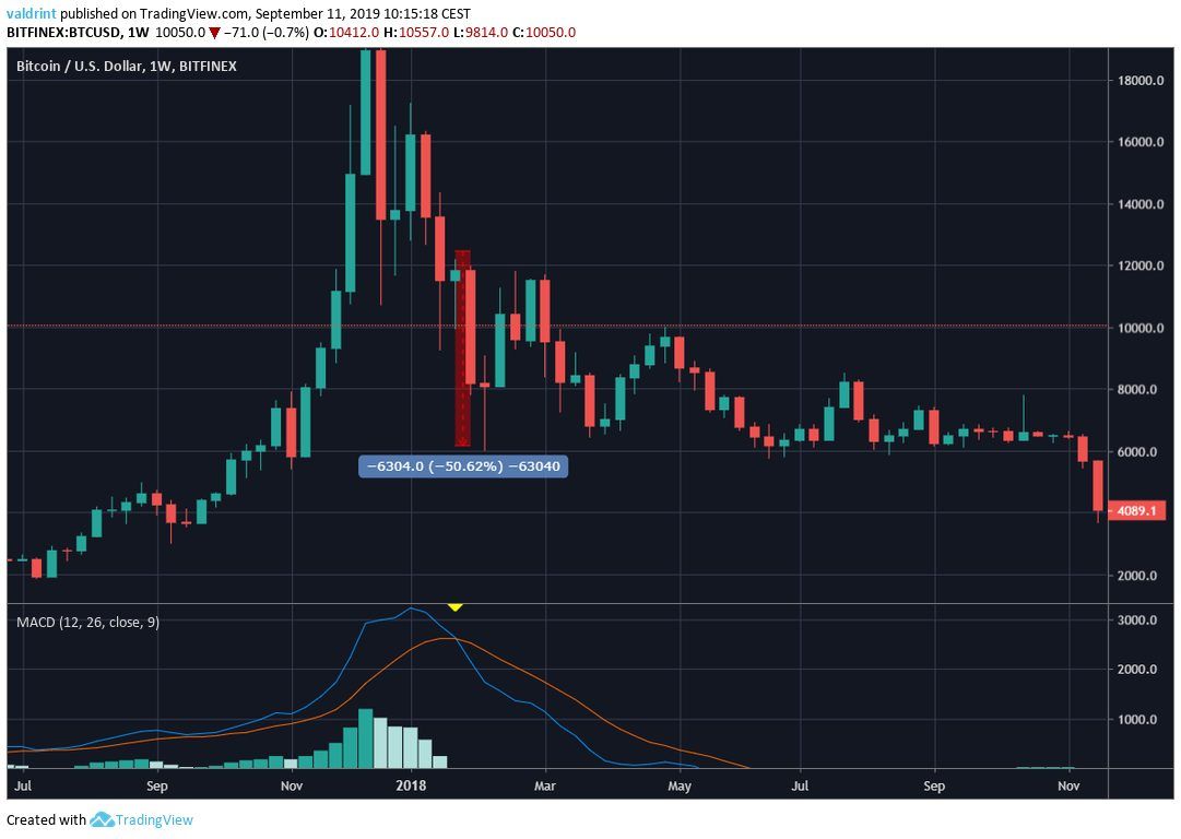 Bitcoin decreased by 50%, reaching values of $6000 before again moving upward,