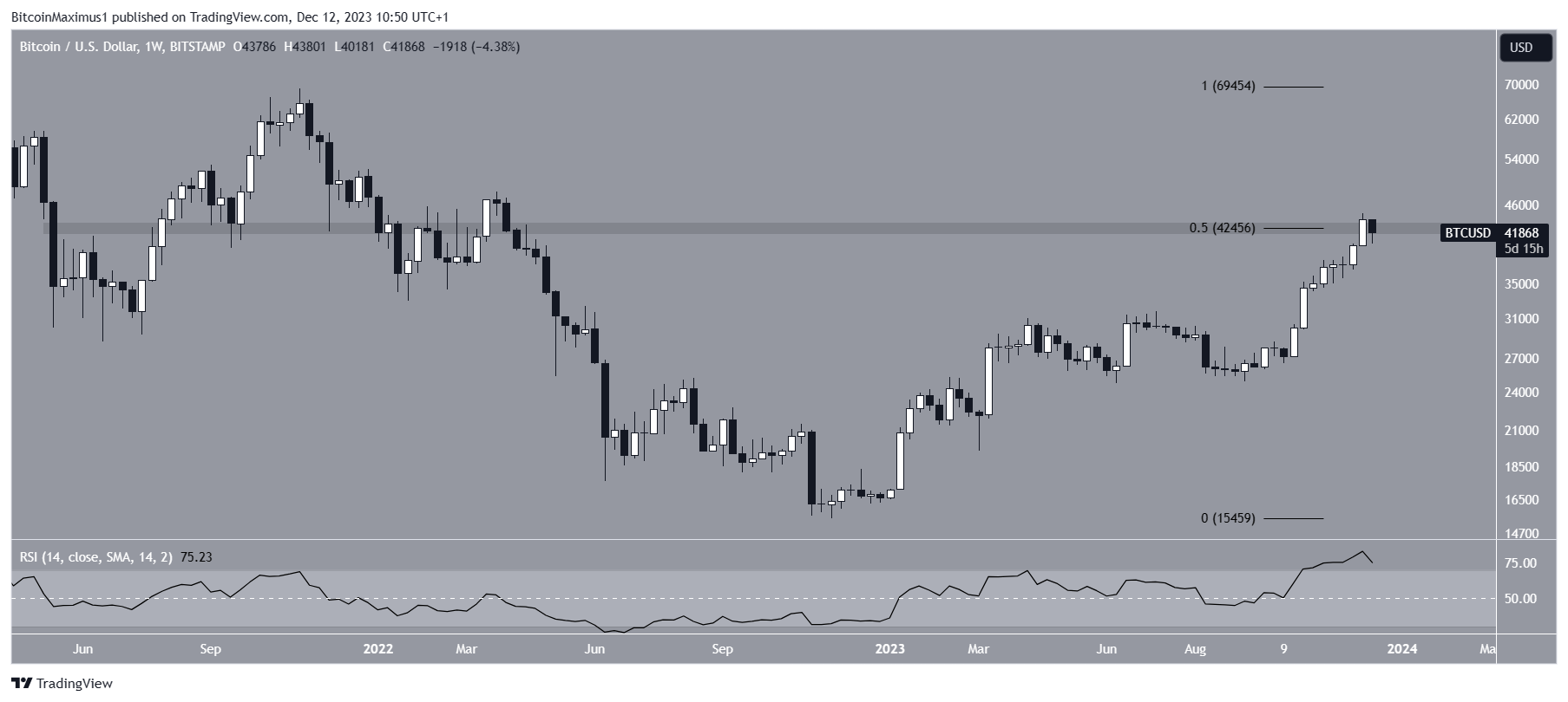 The Bitcoin (BTC) price reached a new yearly high of $44,700 on December 9 but fell afterward.