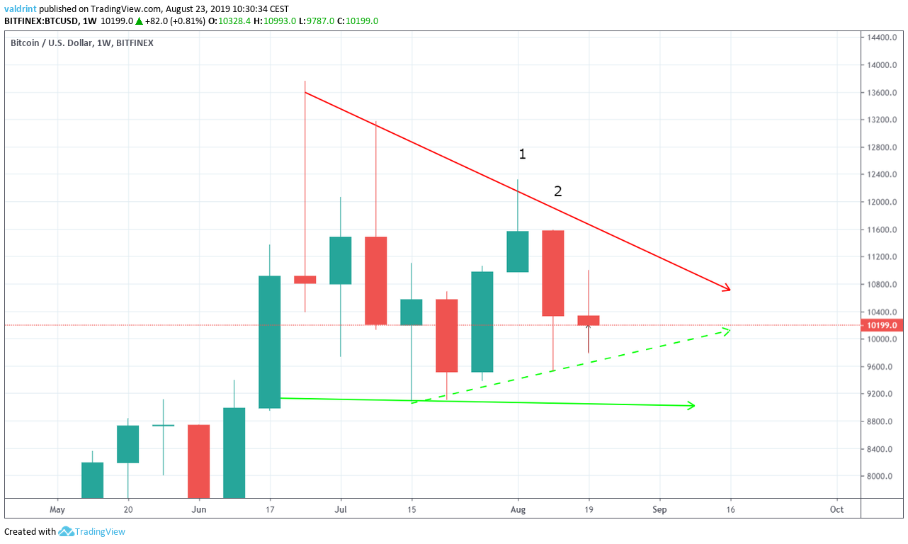 Additionally, there is one support area at $10,000 — identified by the long lower wicks of August 14 and 20.