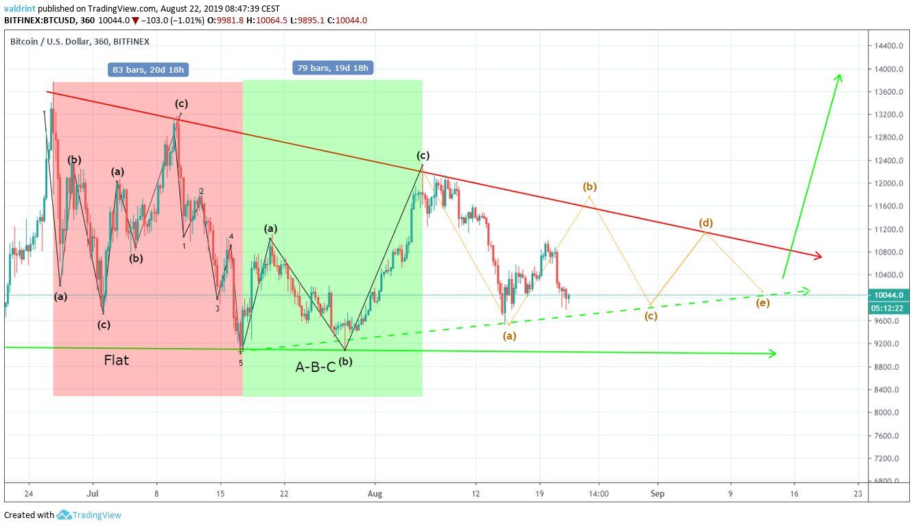 A breakdown below it would likely mean that BTC will complete a zigzag correction.