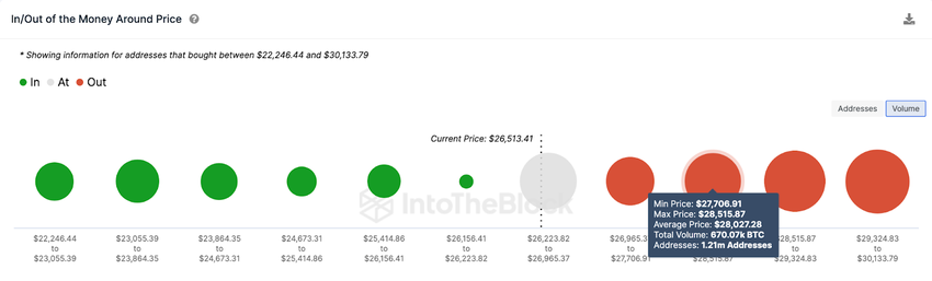 As illustrated below, the 1.21 million addresses had bought 670,000 BTC at an average price of $28,000. If they anticipate further downswing, they could sell and trigger another pullback.
