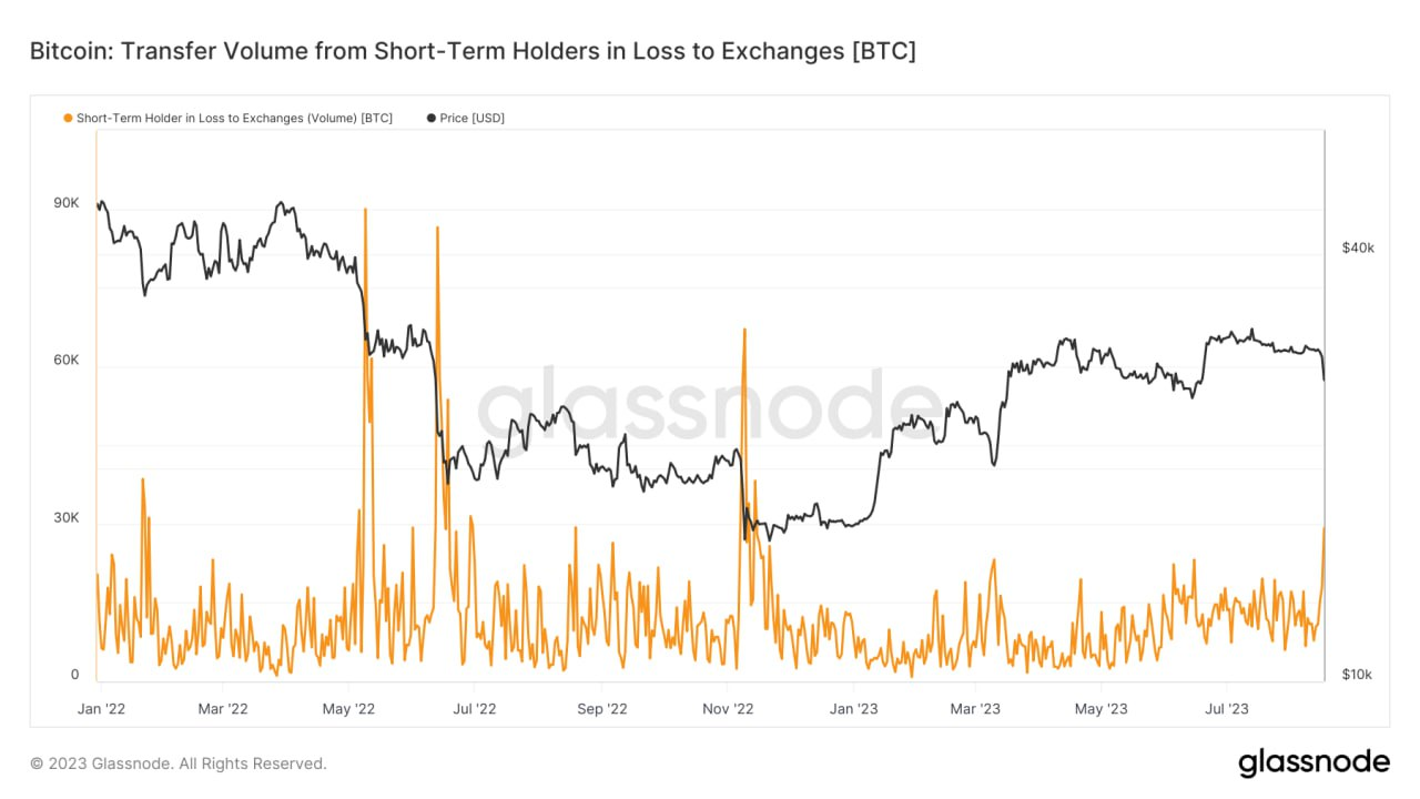 While the above events may not have directly caused the price decline, traders took the news correlated with a weakening market as a sign to derisk and sell off their Bitcoin holdings in case of a bigger price decline – Which later occurred. As seen in the chart below, short-term holders began to sell their BTC as the price declined.