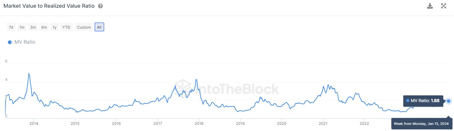 Still, the current market scenario does not mirror the typical characteristics of previous tops, according to IntoTheBlock.