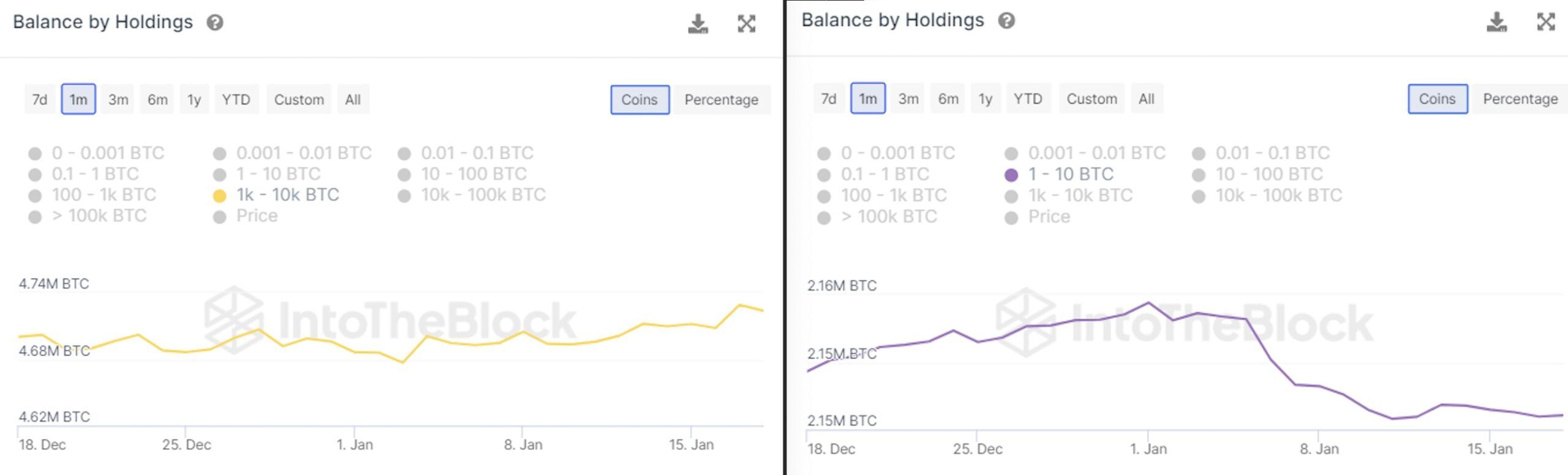 Interestingly, addresses holding over 1,000 BTC have increased their holdings, while those with fewer than 1,000 BTC have decreased theirs in January. On the other hand, the balance held by short-term holders has been on the rise since October 2023, a trend typically associated with bull markets.
