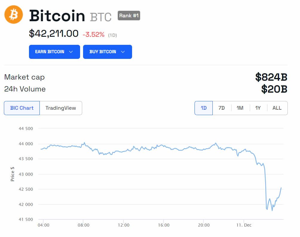 Bitcoin is leading losses with the asset shedding 3.2% in a fall to $42,377 at the time of writing. Analysts had predicted a correction to an overly frothy crypto market and it appears to be starting this week.