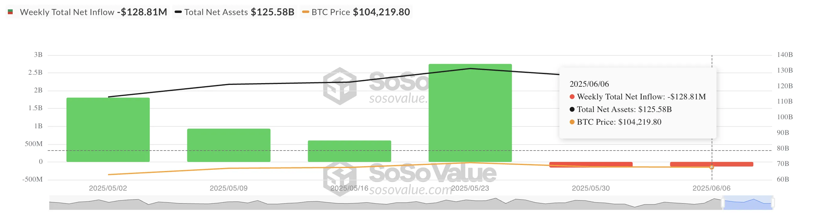 According to SosoValue, net outflows from spot BTC ETFs totaled $129 million between June 2 and June 6. The moderation in capital flight suggests that while some institutional investors remain wary, others may be growing more risk-on sentiment.