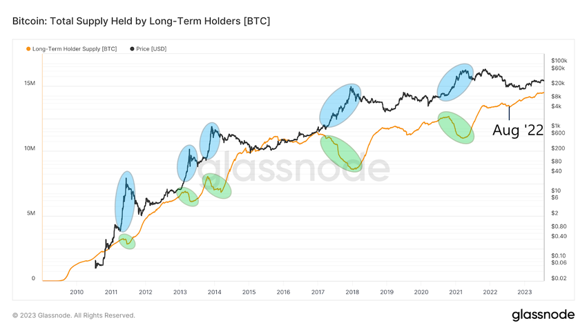 However, it has always been the case that bear markets have led to increased assets held long-term. Moreover, this trend often continued throughout the accumulation phase and even in the first months of a new bull market.