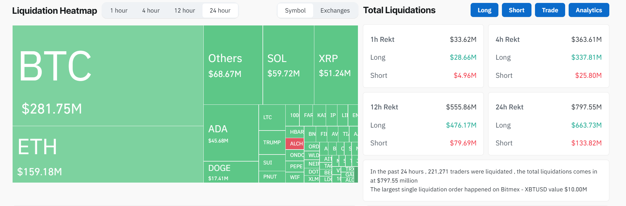 The US economy hasn’t shrunk that much since the early days of the Covid-19 pandemic five years ago. These macroeconomic factors are a significant signal that Bitcoin might turn bearish in the short term. In fact, market liquidations have hit nearly $800 million today.