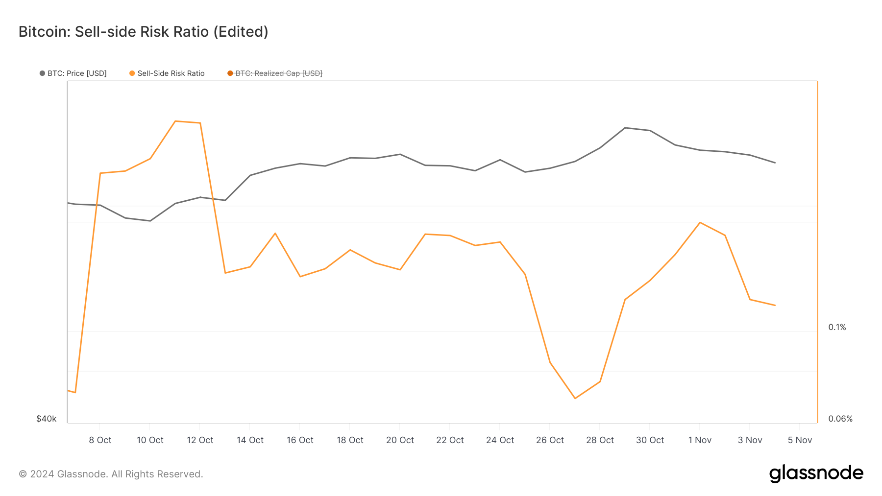 According to Glassnode, the Bitcoin price increase comes amid a drop in the sell-side risk ratio. This metric shows whether investors are confident about a bullish performance or if conviction is low.