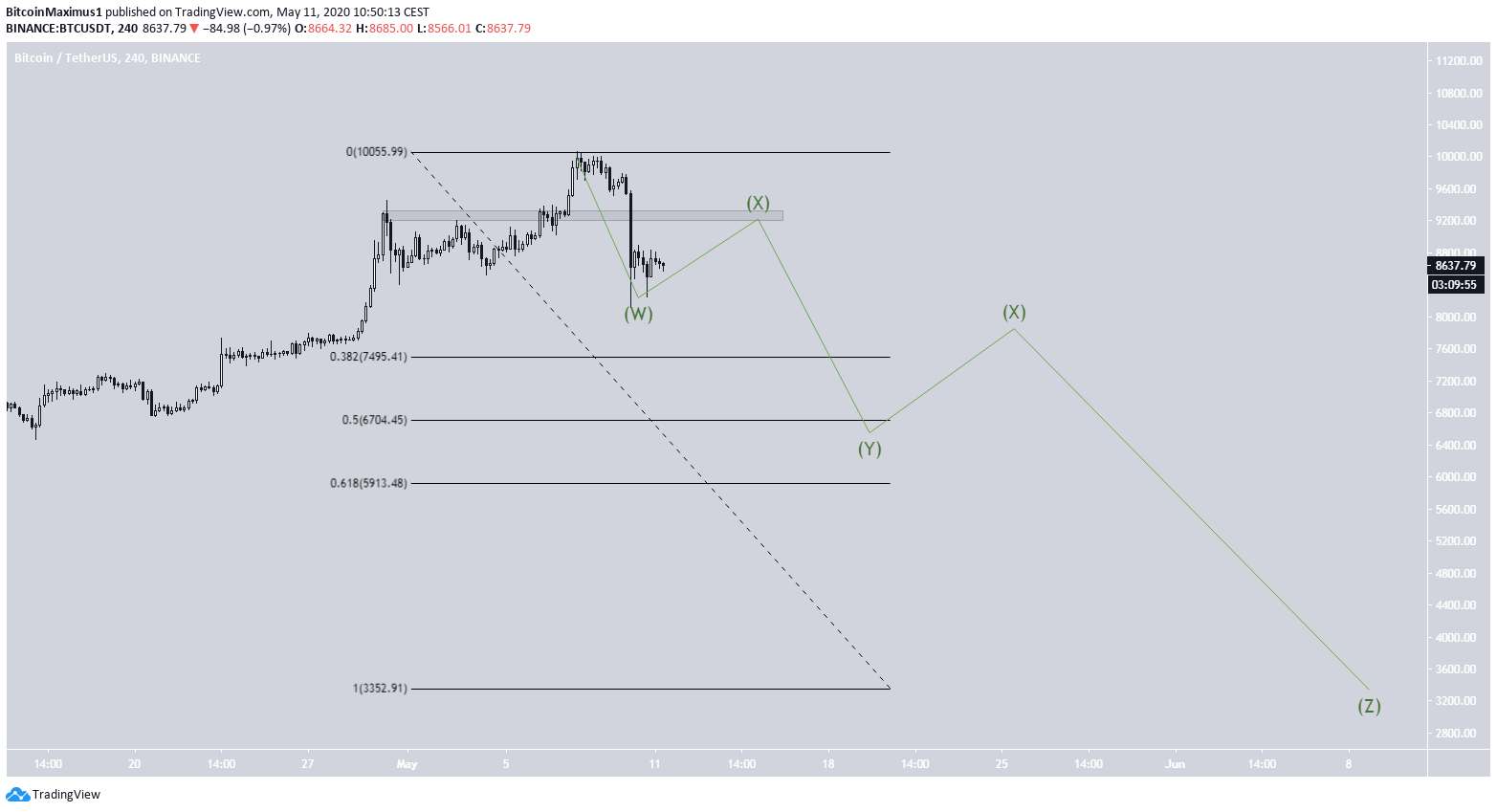 To conclude, the BTC price is possibly following a fractal from February 2020. If the pattern is followed in its entirety, the formation will end with a low of $3,352, reached next month.