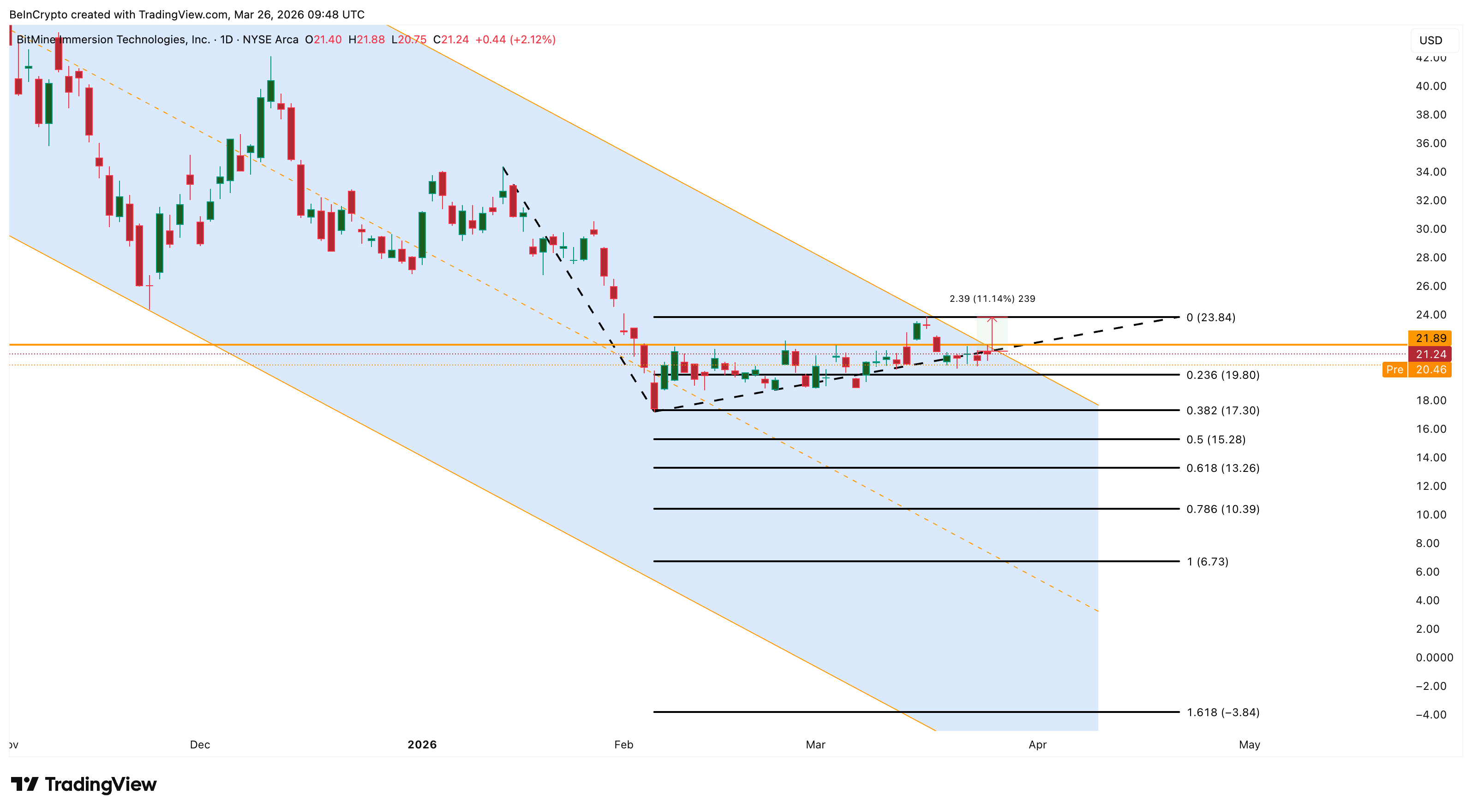 A daily close above $23.84 would break the six-month channel and potentially realign the BitMine stock price with Ethereum’s rally, while a failure below $19.80 confirms that even a 4.66 million ETH treasury cannot rescue a stock that institutions refuse to buy.
