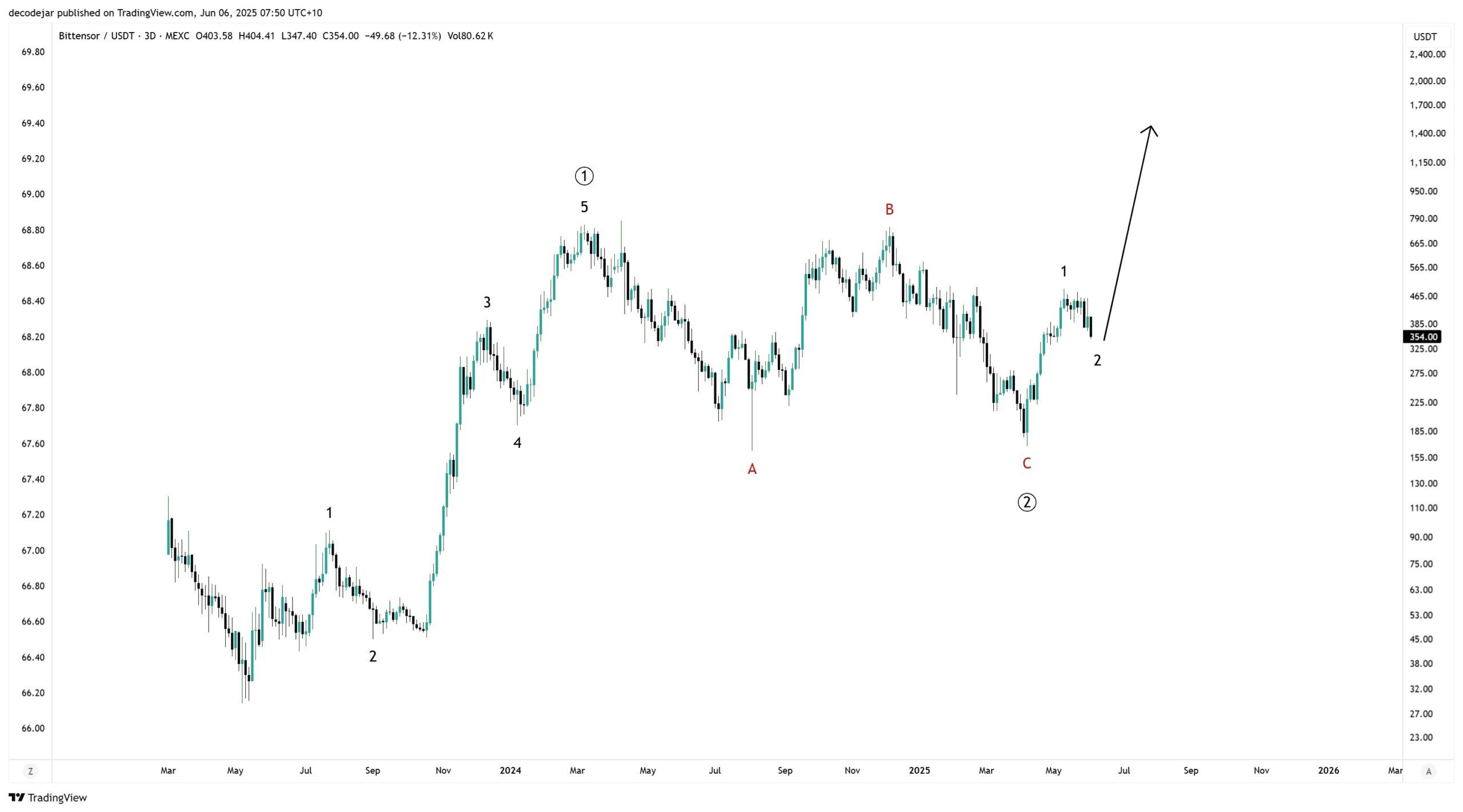 Optimism about Bittensor stems from technical upgrades and bullish price forecasts. Analyst Decode, using Elliott Wave Theory, predicts that TAO could break past the $1,000 mark soon.