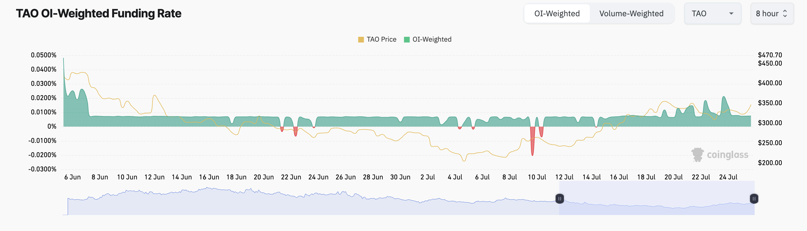 Since it began to trade within this channel, TAO has faced resistance at $364.15 and found support at $317.88. The altcoin’s price began to trend toward support on July 19. However, by July 25, the bulls successfully defended this level, and the token has since resumed its uptrend.
