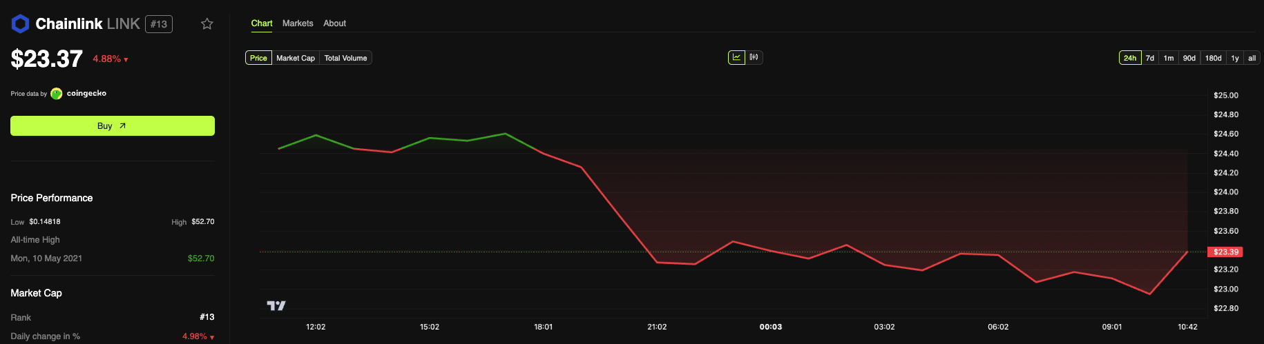 Despite the ETF filings, LINK tokens still remain around 5% down in the last 24 hours.