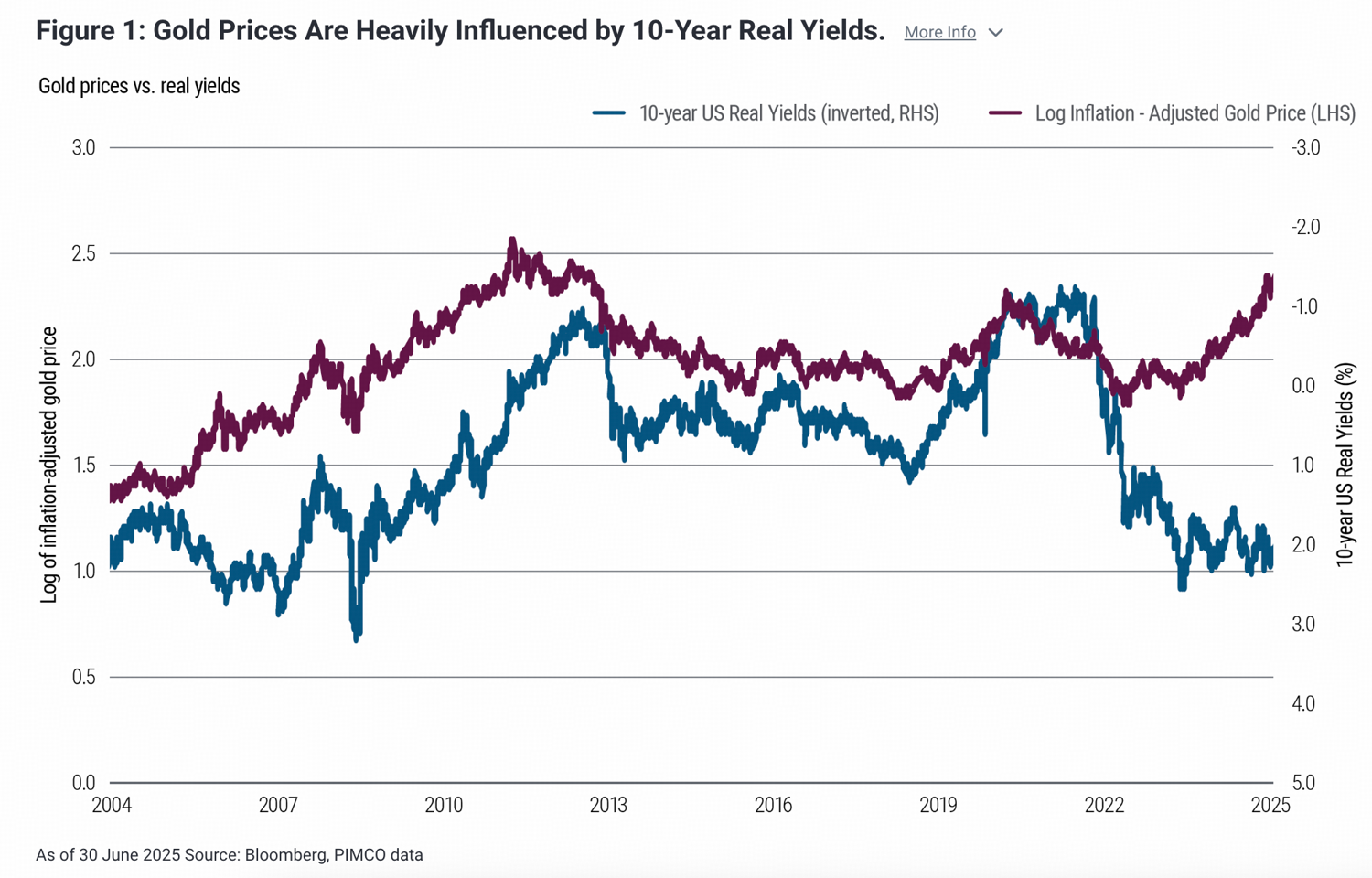 The real rate is the nominal bond yield minus inflation expectation, and it was once the primary long-run anchor for gold.