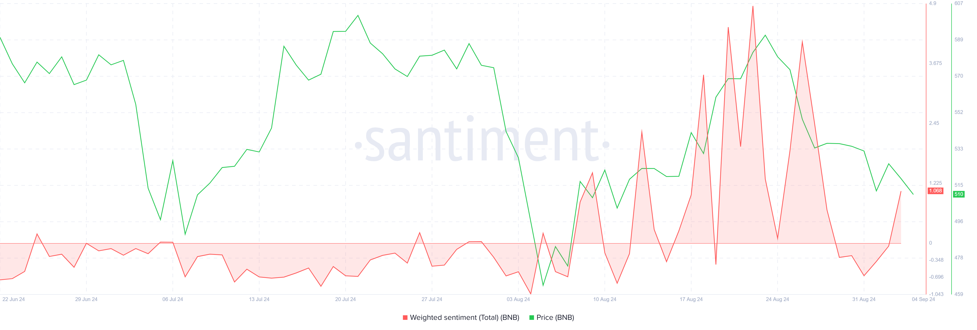 The Sharpe Ratio, a key indicator of risk-adjusted return, currently stands at -10.72% for BNB price. Negative Sharpe Ratios typically indicate increased volatility and risk but also set the stage for potential gains.