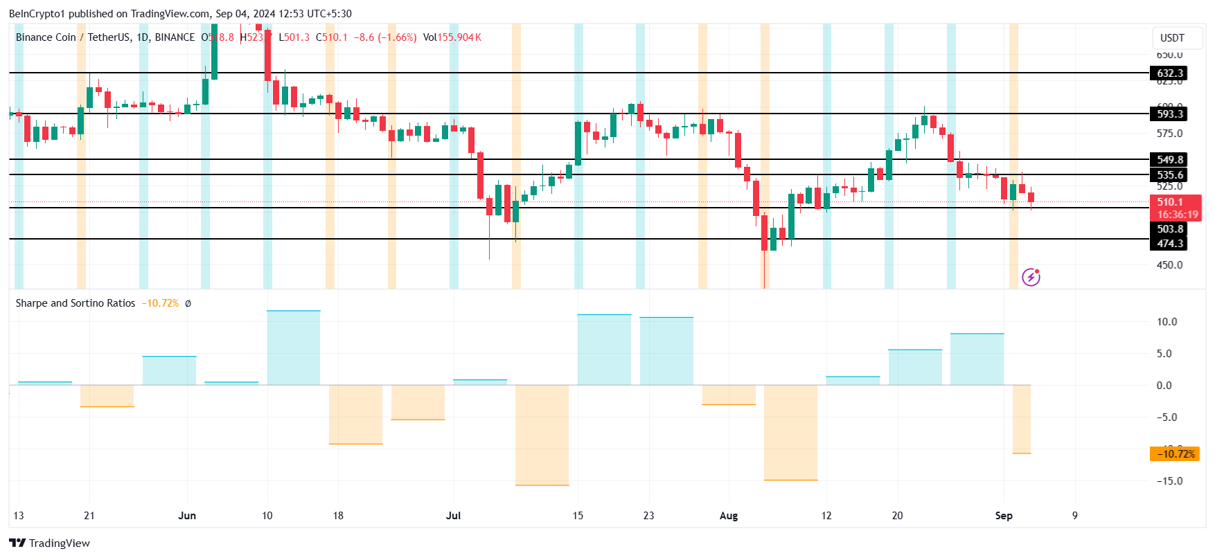 As historical data suggests, upward trends have often followed periods of negative Sharpe Ratios. This could mean that BNB’s current position might be an opportunity for investors seeking a rebound.