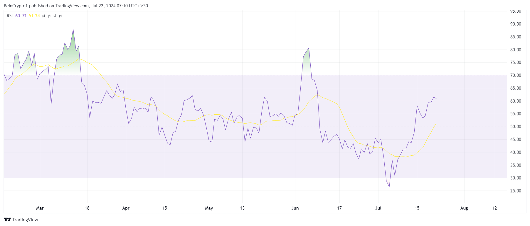 BNB price rise by 22% appears to be changing the investor’s behavior, and signs of the same are visible in the indicator. The Relative Strength Index (RSI) indicates that buying pressure is on the rise. This uptick in buying activity is a positive sign, suggesting that investors are increasingly confident in BNB’s potential for growth.